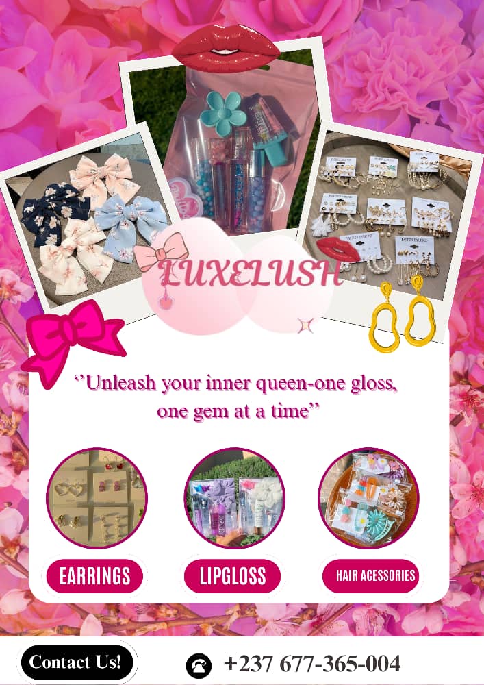 LuxeLush Flyer .The LuxeLush flyer is a vibrant, feminine promotional design for a beauty brand offering earrings, lip gloss, and hair accessories. It uses bold colors like pink and purple to attract attention and express the brand’s glamorous identity. The layout is playful, featuring product images framed in a Polaroid-style format. A catchy tagline, “Unleash your inner queen—one gloss, one gem at a time,” reinforces the message of self-confidence and elegance. The flyer also includes easy-to-access contact details, encouraging customer engagement. It’s ideal for social media marketing, showcasing the brand’s youthful energy and variety of stylish, affordable beauty products.